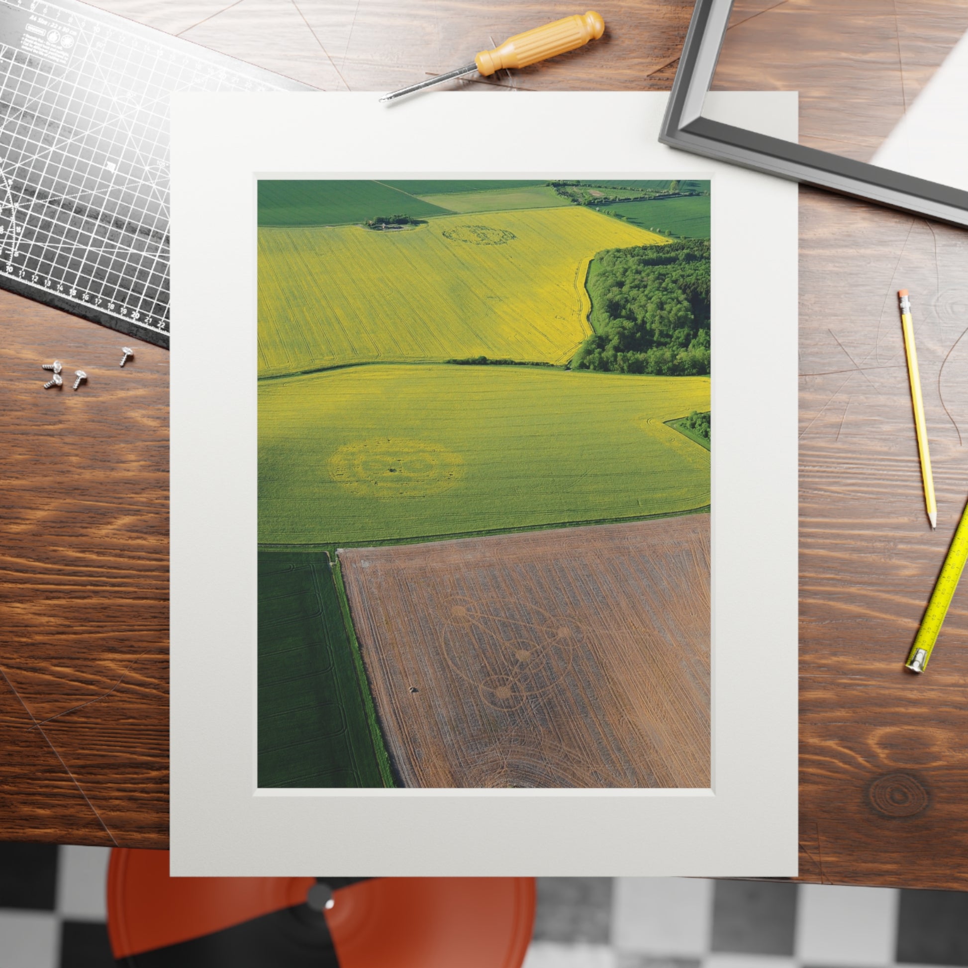 Woodborough Hill, Three Phantom Crop Circles – 2010 | Fine Art Print with Passepartout Paper Frame